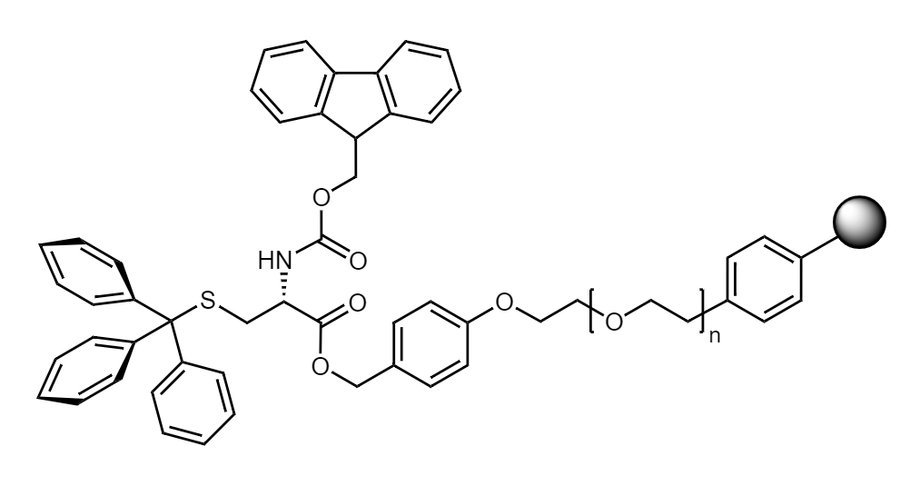 Fmoc-Cys(Trt) Low Crosslinked Polystyrene-PEG R PHB Resin, 90 µm, Capacity 0.15-0.22 mmol/g