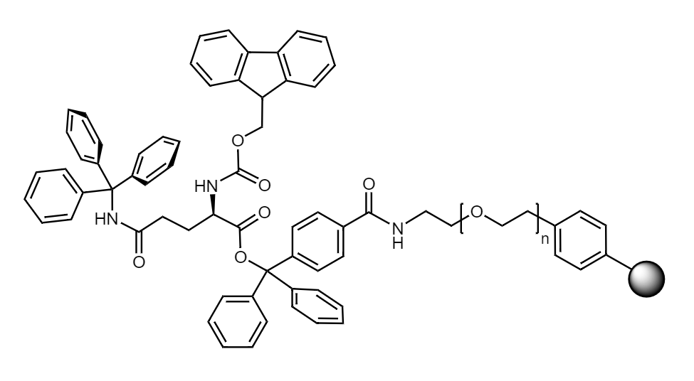 Fmoc-D-Gln(Trt) Low Crosslinked Polystyrene-PEG S TRT Resin, 90 µm, Capacity 0.15-0.25 mmol/g