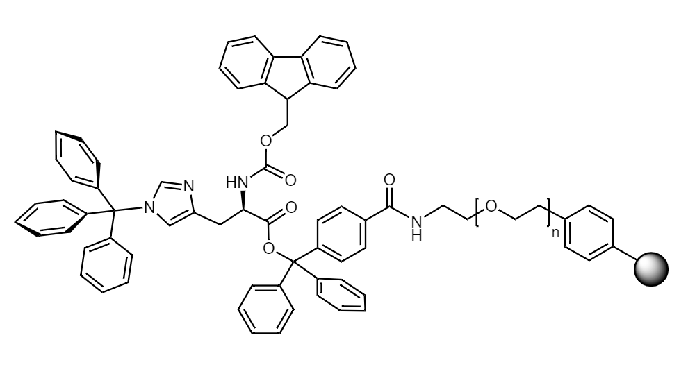 Fmoc-D-His(Trt) Low Crosslinked Polystyrene-PEG S TRT Resin, 90 µm, Capacity 0.15-0.25 mmol/g