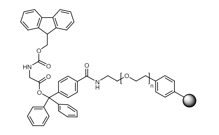 Fmoc-Gly Low Crosslinked Polystyrene-PEG S TRT Resin, 90 µm, Capacity 0.15-0.25 mmol/g