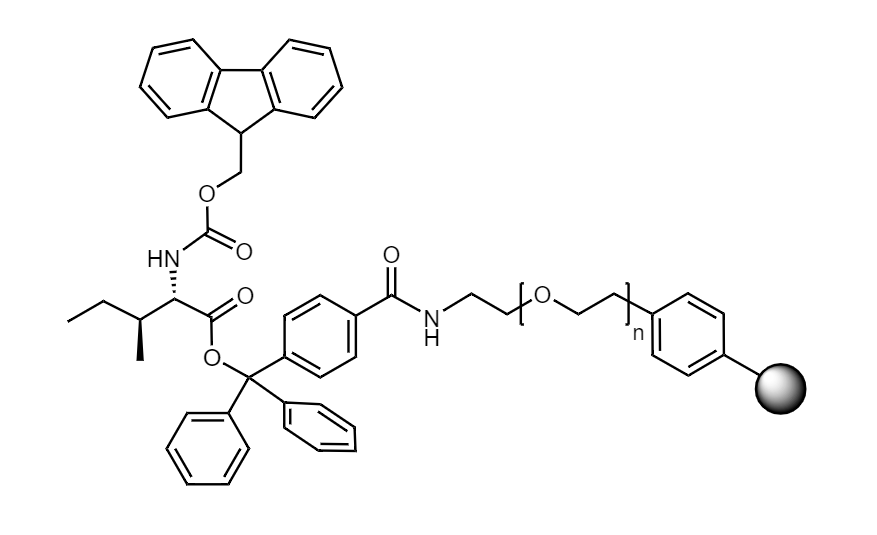 Fmoc-Ile Low Crosslinked Polystyrene-PEG S TRT Resin, 90 µm, Capacity 0.15-0.25 mmol/g