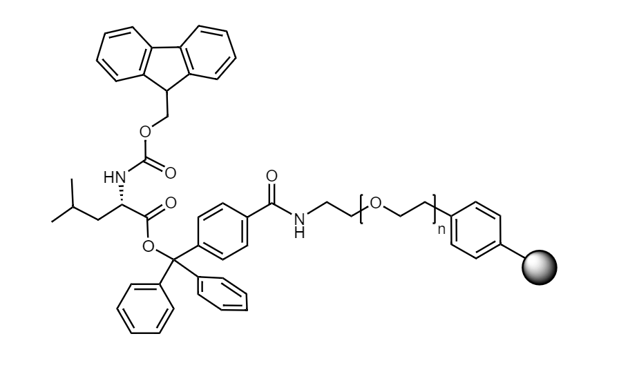 Fmoc-Leu Low Crosslinked Polystyrene-PEG S TRT Resin, 90 µm, Capacity 0.15-0.25 mmol/g